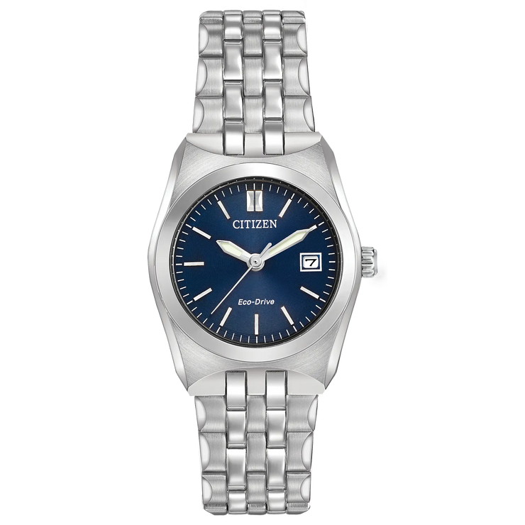Featuring our Eco-Drive technology – powered by light, any light. Never needs a battery. Caliber number E011.