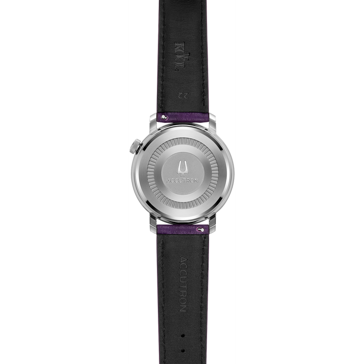 Accutron's Proprietary Electrostatic Movement. The electrostatic energy is created by twin turbines that rotate as a result of human motion at incredible speeds between two electrodes affixed to the movement. The energy, stored in an accumulator, powers two motors; a world’s first electrostatic motor fueling the fluid second hand and a step motor powering the hour and minute hands.